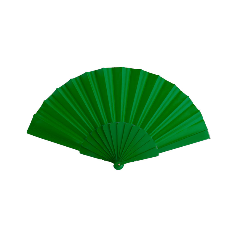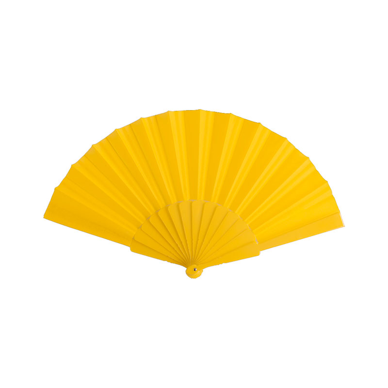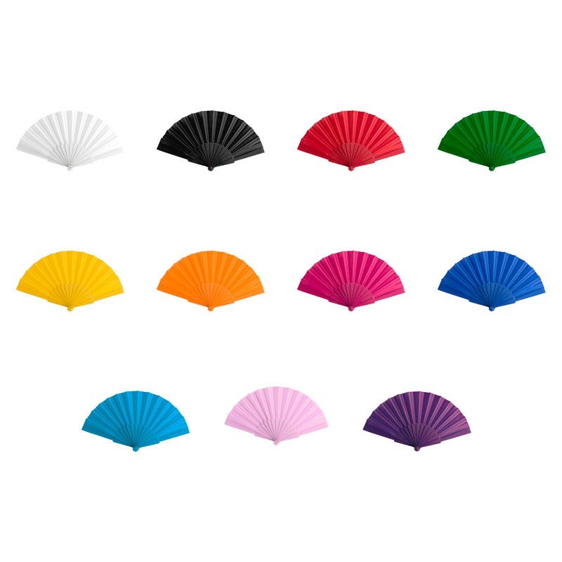 Abanico de varillas de plástico y tela en poliéster. Escoge entre una amplia gama de colores. Imprimimos tu imagen a todo color.