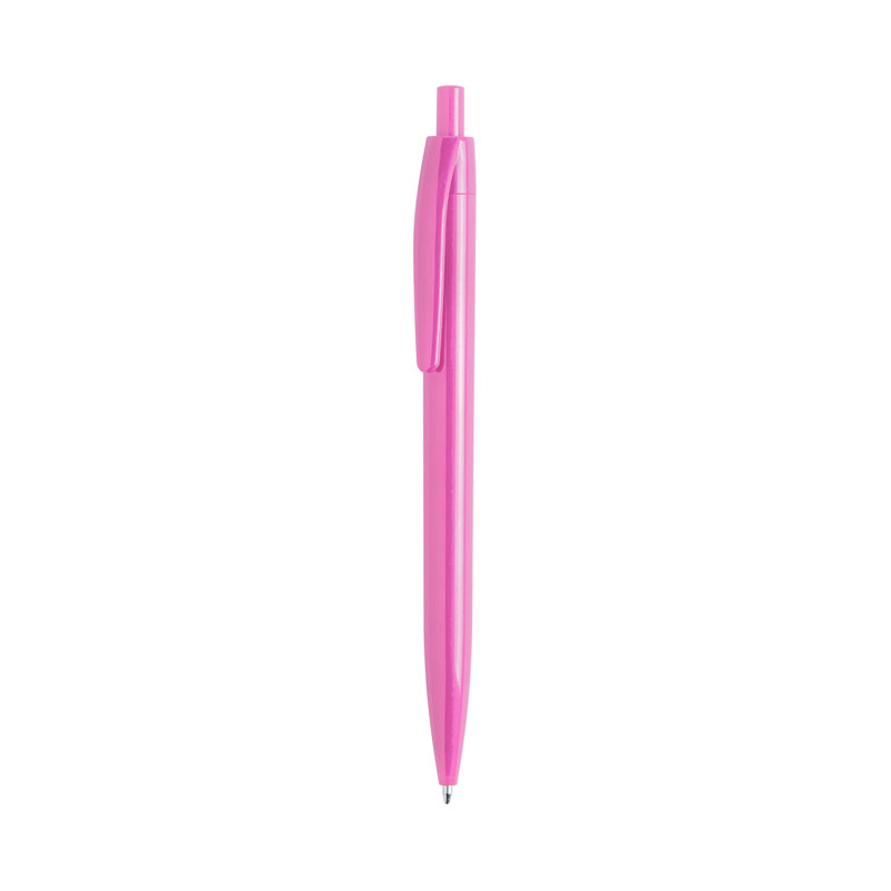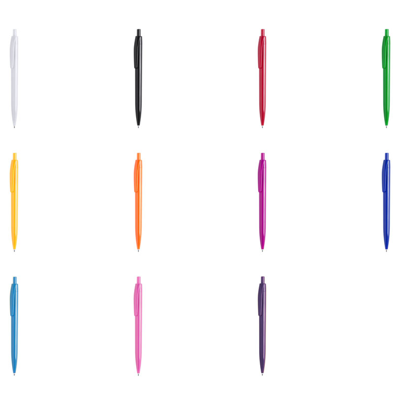 Estos bolígrafos con cuerpo de plástico están disponibles en una variada gama de colores. Con mecanismo pulsador y tinta azul. Personalízalo imprimiendo tu diseño a una tinta.