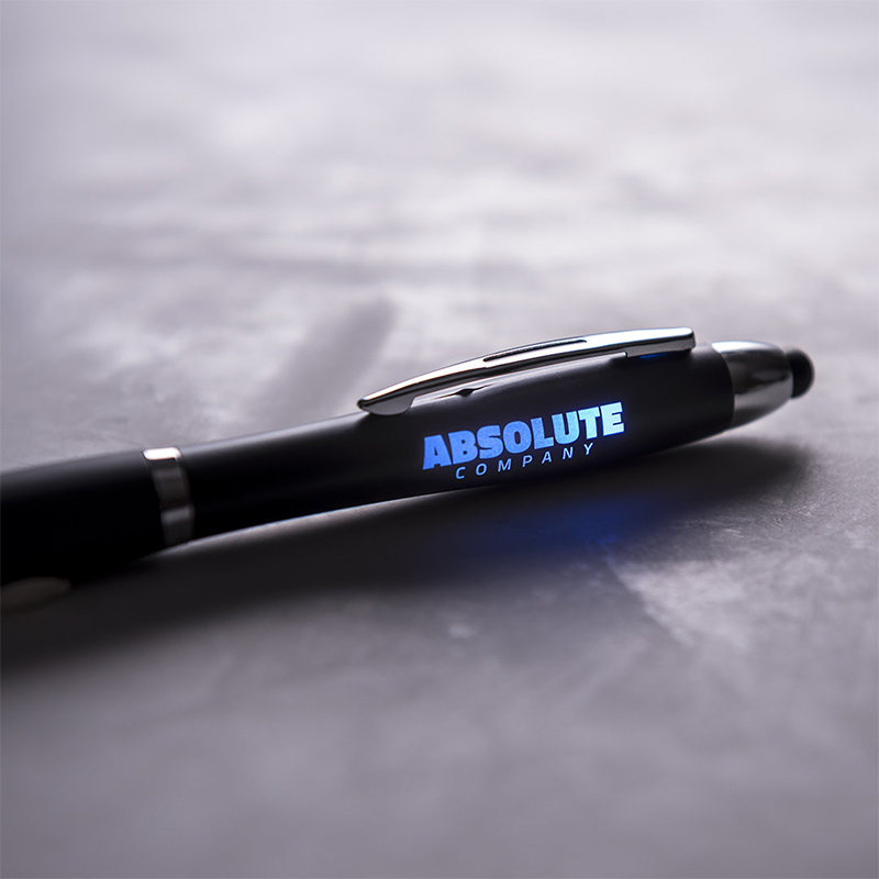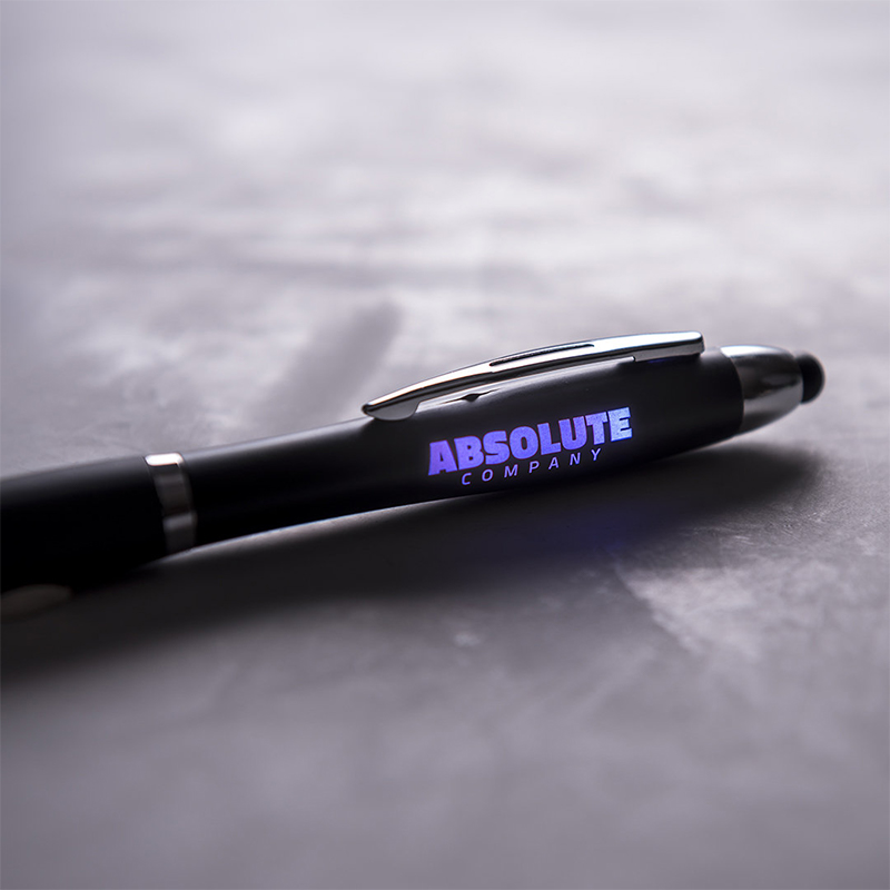 El bolígrafo Columbia está especialmente diseñado para la impresión láser y cuenta con una luz led de 5 colores en su interior para que tu logo se ilumine. Incluye dos modos de iluminación y pilas de botón. Opcionalmente se puede añadir una cajita de cartón personalizada a todo color.