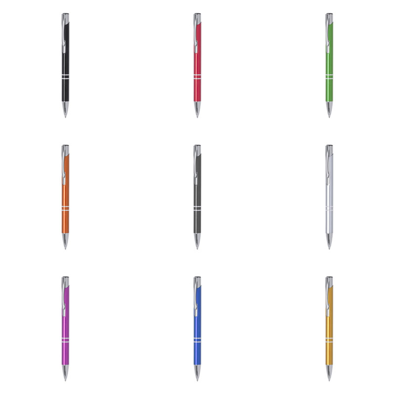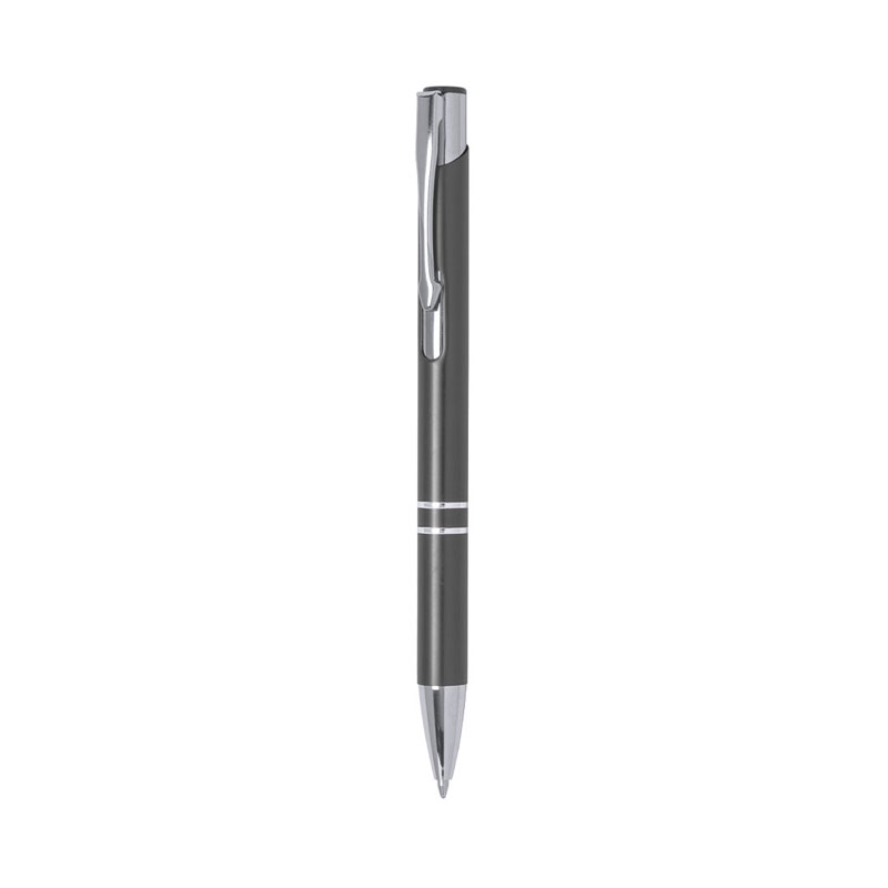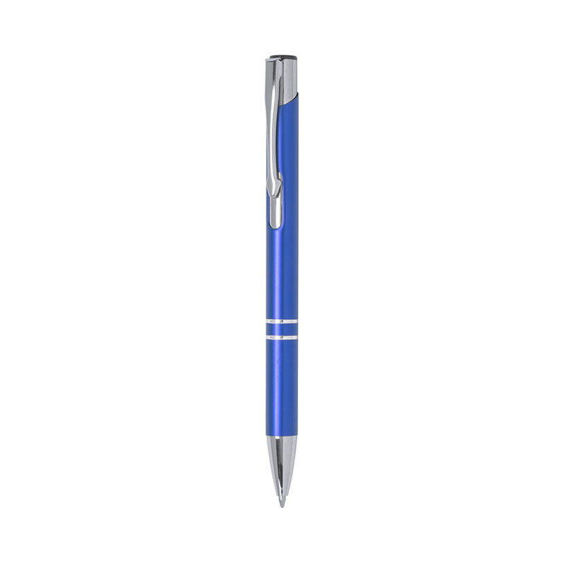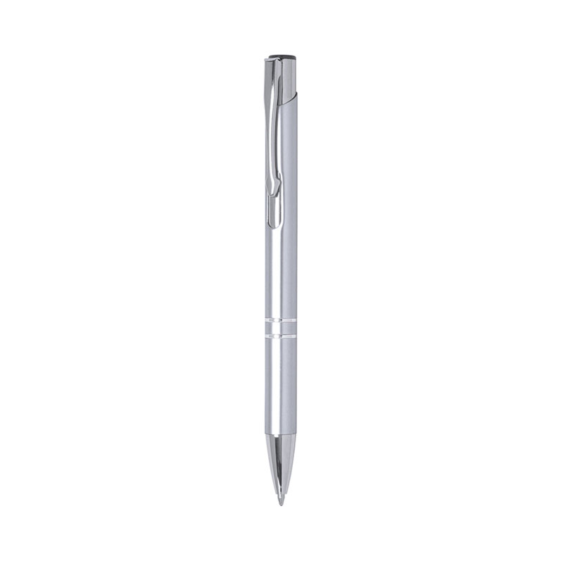 El bolígrafo Essex está compuesto por un cuerpo de aluminio troquelado con un brillante diseño bicolor. Clip, anillas y punta a juego en color plateado. Con mecanismo pulsador, tinta azul y cartucho jumbo. Opcionalmente se puede añadir una cajita de cartón personalizada a todo color.
