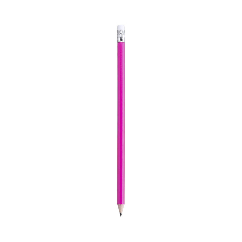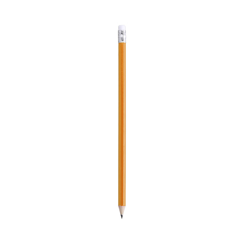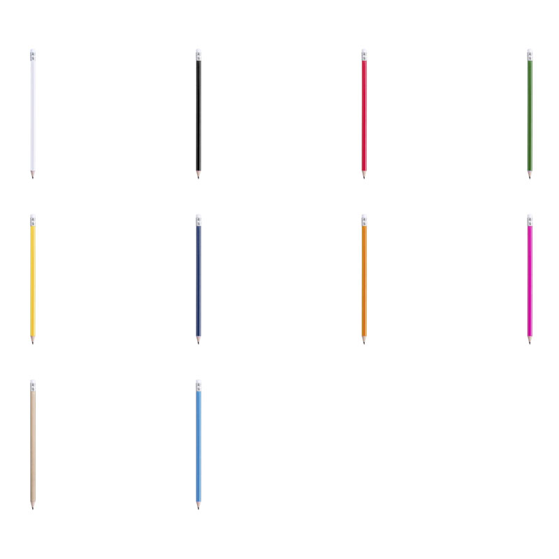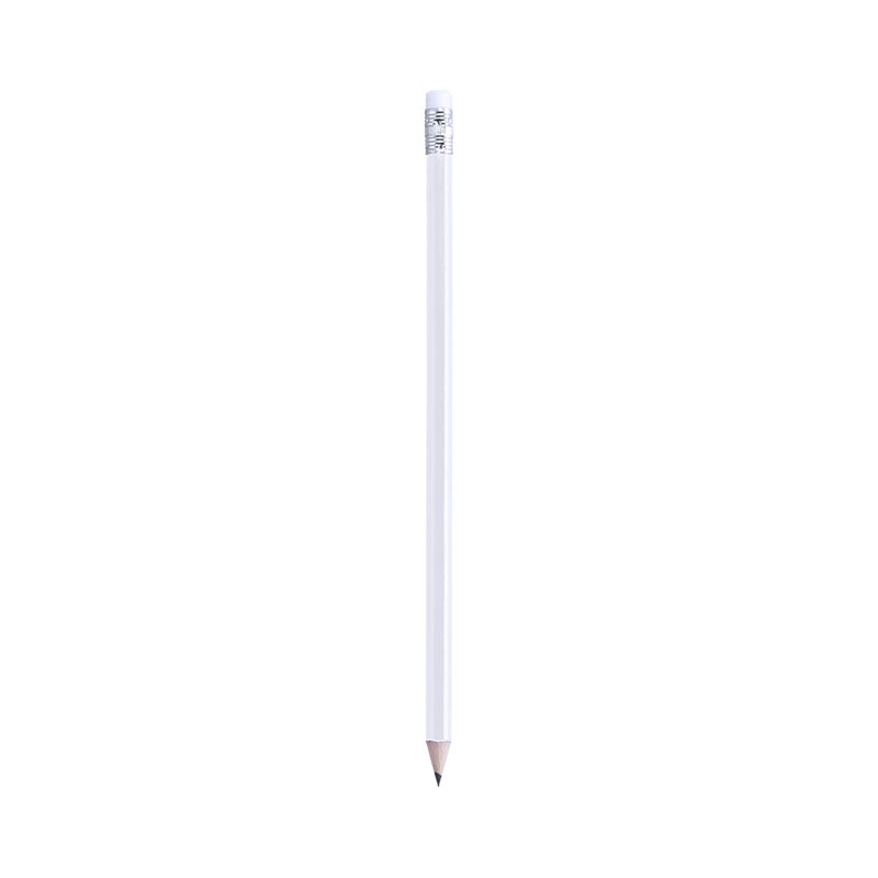 Imprime tu diseño en estos lápices con cuerpo de madera redondo y goma de borrar blanca. Con mina negra y punta afilada.