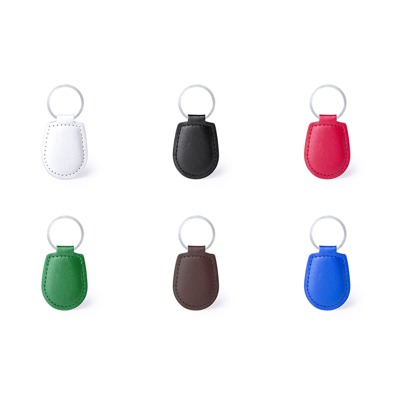 Imprimimos tu logo a un color en estos llaveros de polipiel. Sin pedido mínimo. Disponibles en varios colores.