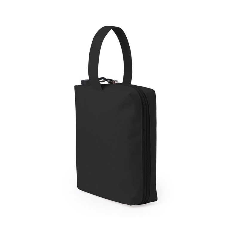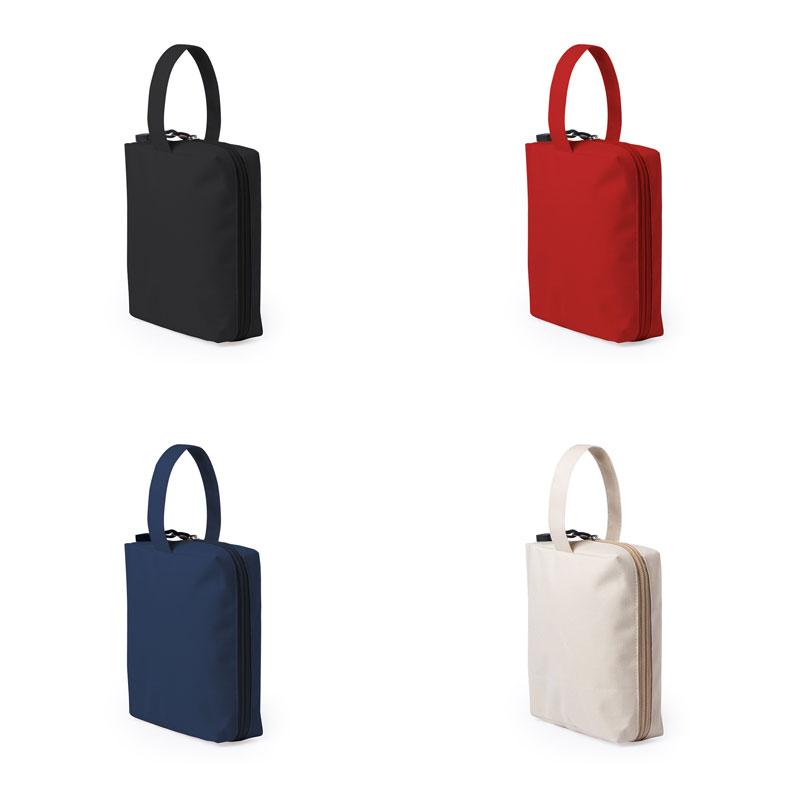 Neceser fabricado en poliéster 600D con tirador de fácil apertura y cierre de cremallera. Disponible en 4 colores distintos. Personalízalo imprimiendo tu imagen a una tinta.