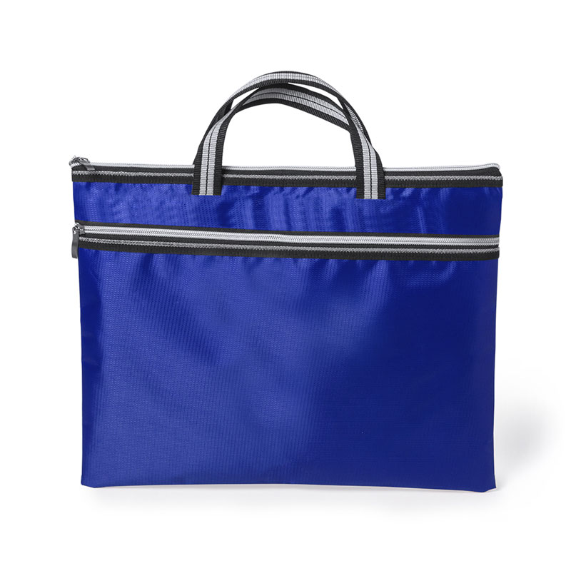 Estos portadocumentos fabricados en poliéster 300D incluyen un bolsillo frontal y asas de transporte a juego con el cierre de cremallera. Imprimimos tu imagen a una tinta.