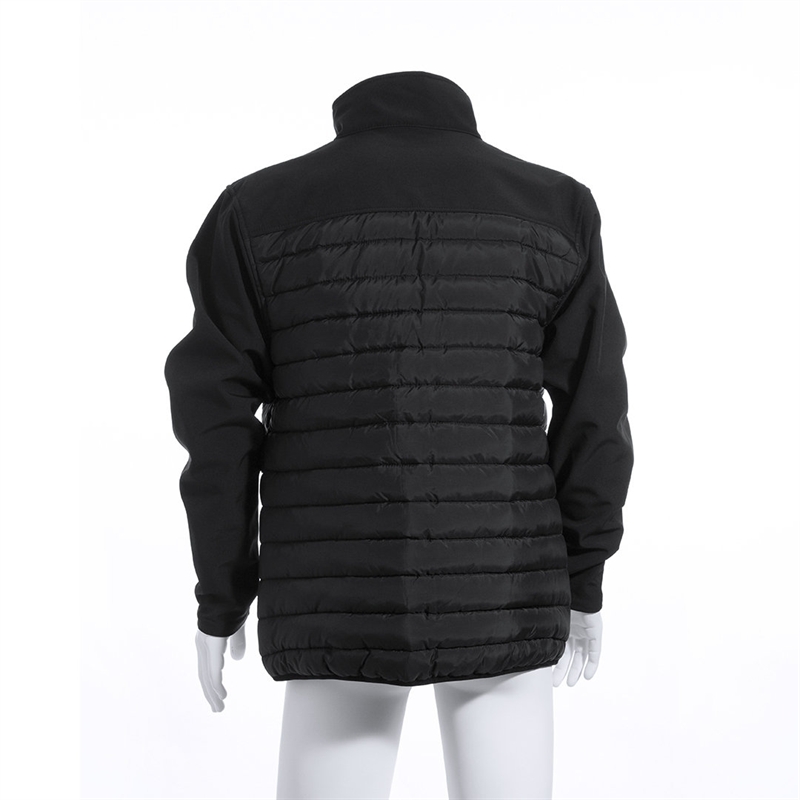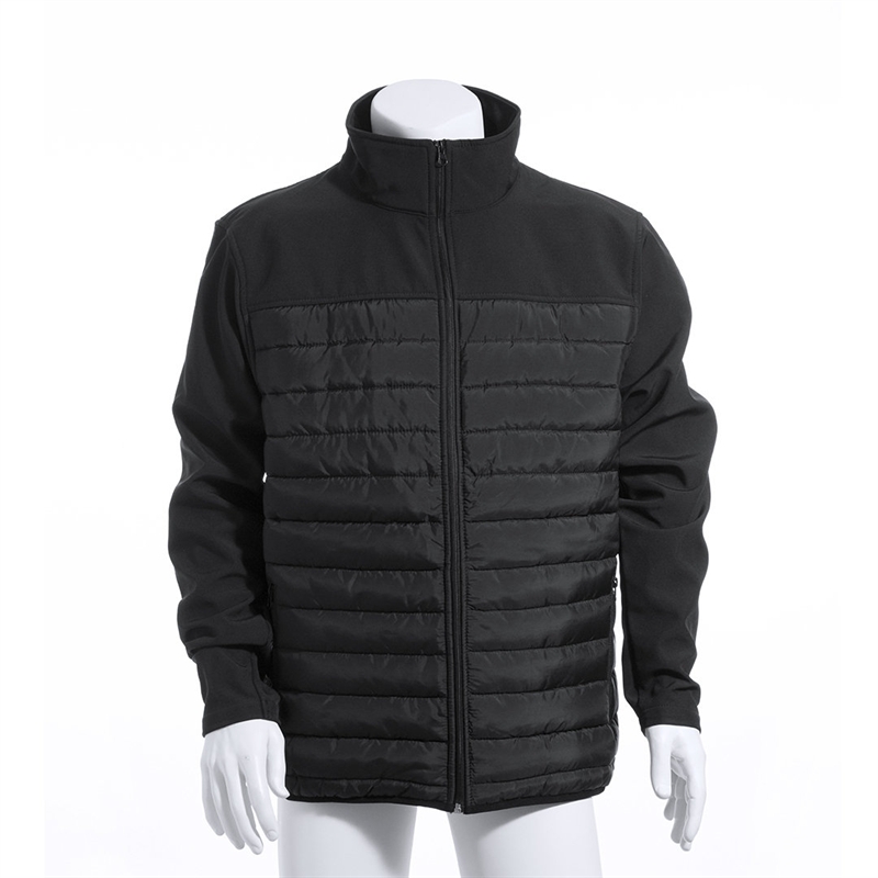La cálida combinación de materiales softshell y poliéster hacen de ésta una chaqueta impermeable y transpirable. Elegante diseño en color negro con puños ajustables, cierre de cremallera y bolsillos laterales. Resistente al viento y al agua.